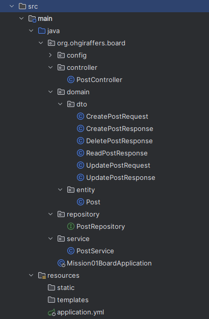 - postService.createPost(request)를 호출하여 게시물을 생성 : dto CreatePostRequest